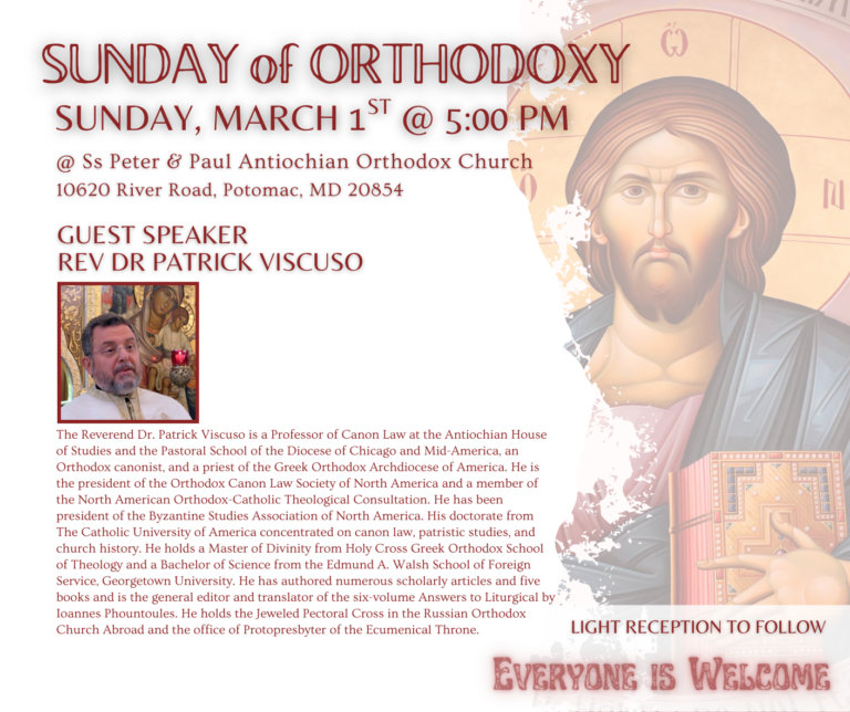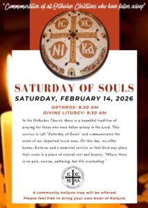 SATURDAY/SUNDAY WORSHIP: Orthros: 8:30AM; Divine Liturgy: 10:00AM;