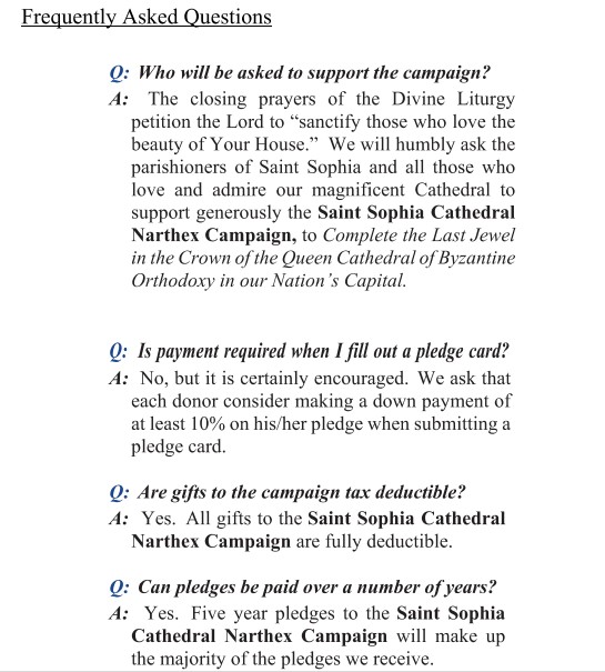 P.S. Please search your heart. Please make your most generous pledge. Those that can do more, should do more. Those that can do less, should do less. Each should give according to his/her ability. This is our Cathedral, and we must complete her narthex, the last jewel in the crown of the Queen Cathedral of Byzantine Orthodoxy in our Nation’s Capital.